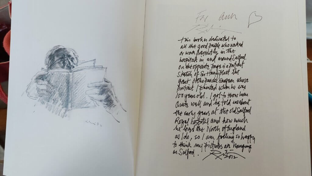 My daughter Catherine was training to be a nurse and she was with the District Nurse. One of the patients they were going to see was Harold Riley. During a conversation with Harold my daughter mentioned that I was very interested in art so Harold asked my daughter if I would like The Hospital Collection book. So he drew a small heart on the inside of the book with my name on it. That particular day was valentines day. My daughter kindly gave me the book, I really appreciate these books and get a lot of pleasure looking through them.