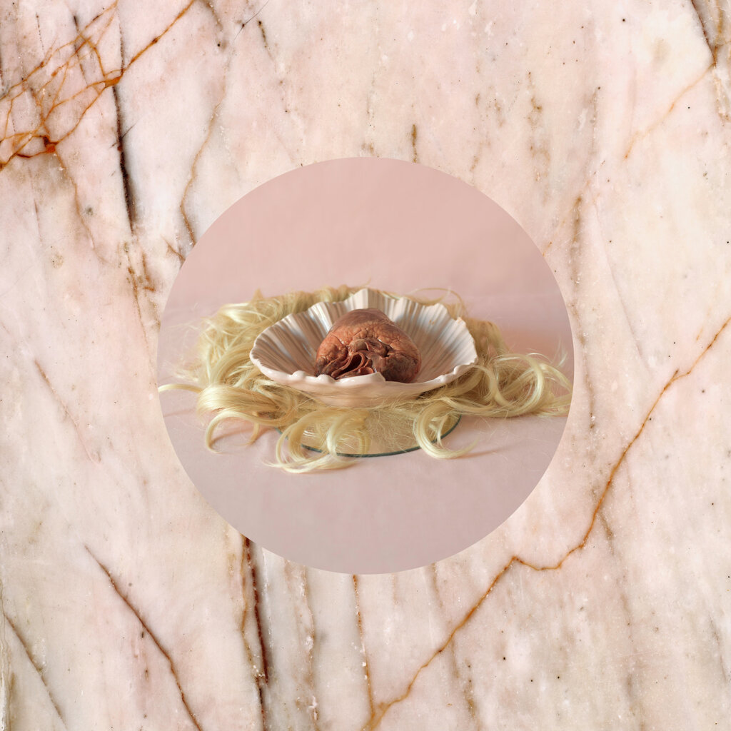 Like Adnams, Dawn Woolley’s still-life work draws inspiration from everyday objects and materials brought together to create unsettling scenes. These still-life combinations give the objects a surreal and mysterious life of their own – a description that is used in relation to the natural objects that feature in Adnams’ paintings. In Memorials old meat is arranged among the party hats and crockery, signaling the end of the consumer party. The objects describe the idealized, gendered, ageing body: time cannot be conquered and so the body sags and ages. To evoke the idea of a memorial to a lost object the photographs are installed leaning against the gallery wall propped up by two deflated balloons.