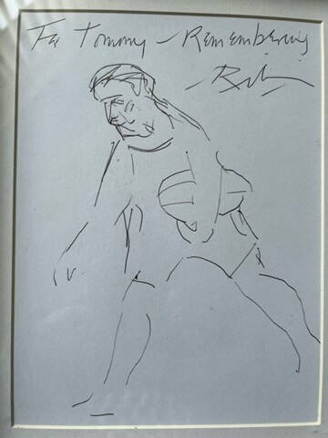 My mother-in-law Sybil Beaumont has a sketch that Harold made of her husband Tom, on a napkin. Tom was very friendly with Harold’s younger brother Mike. Tom played rugby with and against both Harold and Mike.