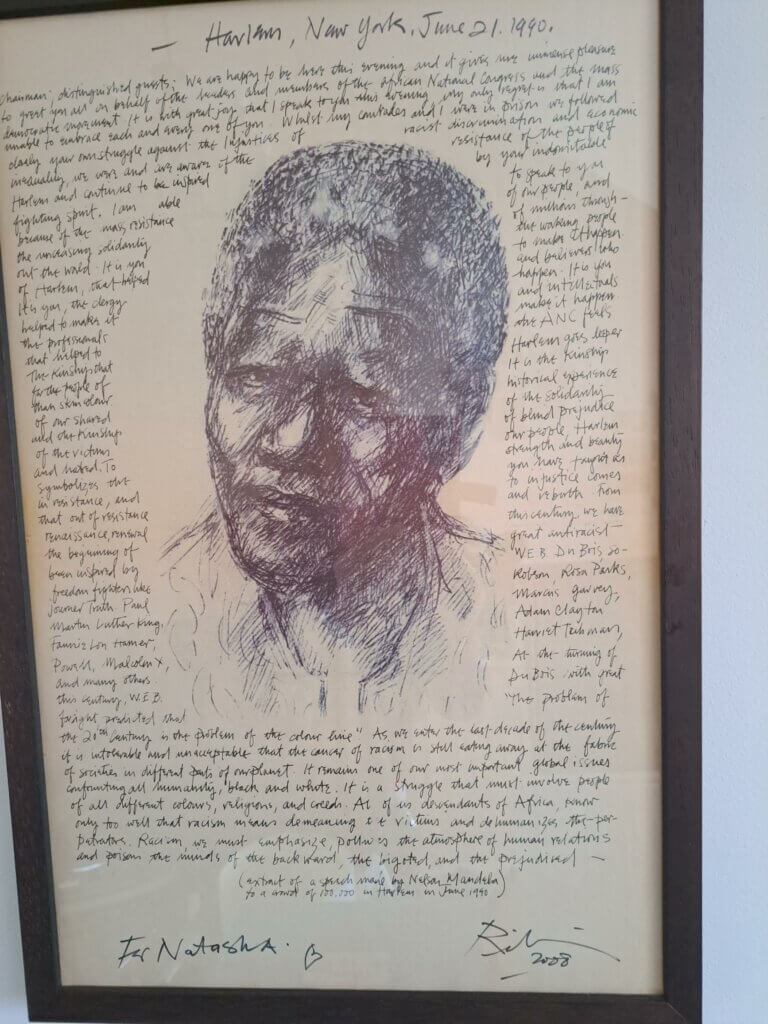 We sent you a sketch of our daughter Natasha Jay, drawn by Mr Riley at a party in 2008. At the same party, Mr Riley was signing special edition copies of the Manchester Evening News, featuring a sketch of Nelson Mandela and his speech in Harlem. Mr Riley wrote ‘For Natasha’ with a heart, and signed and dated the newspaper. We have the page framed and it hangs on our wall in the study.