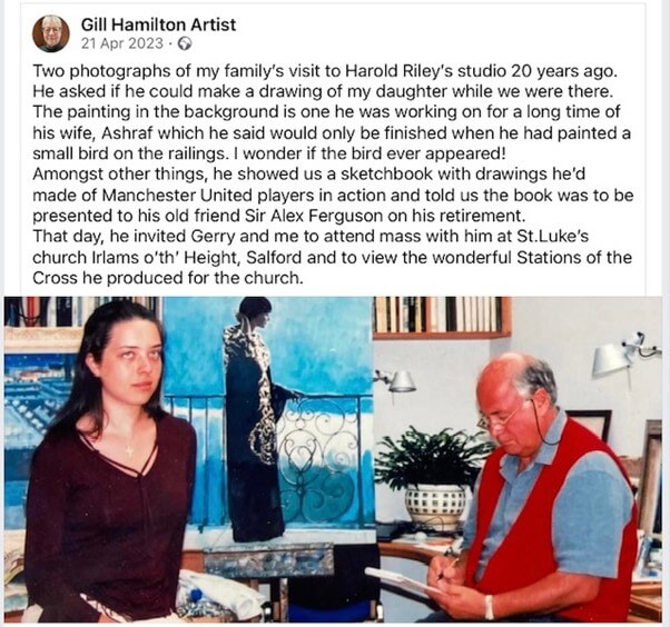 My youngest son was handed a sketchbook to look through of drawings Harold had made at Old Trafford football ground and was fascinated by the accuracy of what must have been fleeting moments during the match.  I believe Harold later gave the book to Sir Alex Ferguson on his retirement.