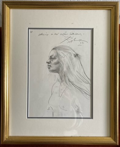 We spent an hour or two, chatting over a cup of tea, looking through his sketchbooks and paintings he was working on.  He shared a love of musicals with my daughter and I remember him playing the LP of Kismet as he made a sketch of her.  He was, of course a great friend of Howard Keel and she was excited to hear some stories of him.