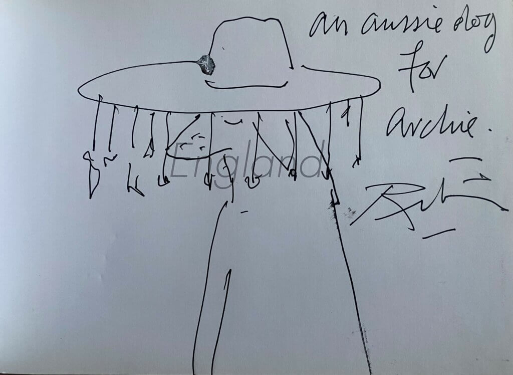 This sketch was done by Harold for my son Archie – he drew him an Australian dog because his granddad was a friend of Harold and is from Sydney.