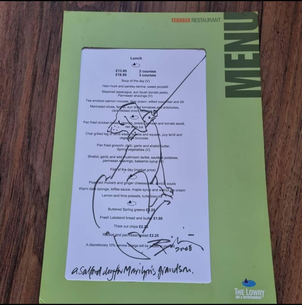 I worked at the Lowry Theatre Restaurant for many years. Mr Harold Riley was a frequent visitor as he lived locally. On one such occasion I greeted Mr Riley and his family and seated them at a table. In the brief conversation we had I informed him that I had recently become a grandmother for the first time. On leaving the restaurant Mr Riley beckoned me over and said he had left me something on the table. A really nice and friendly polite man.