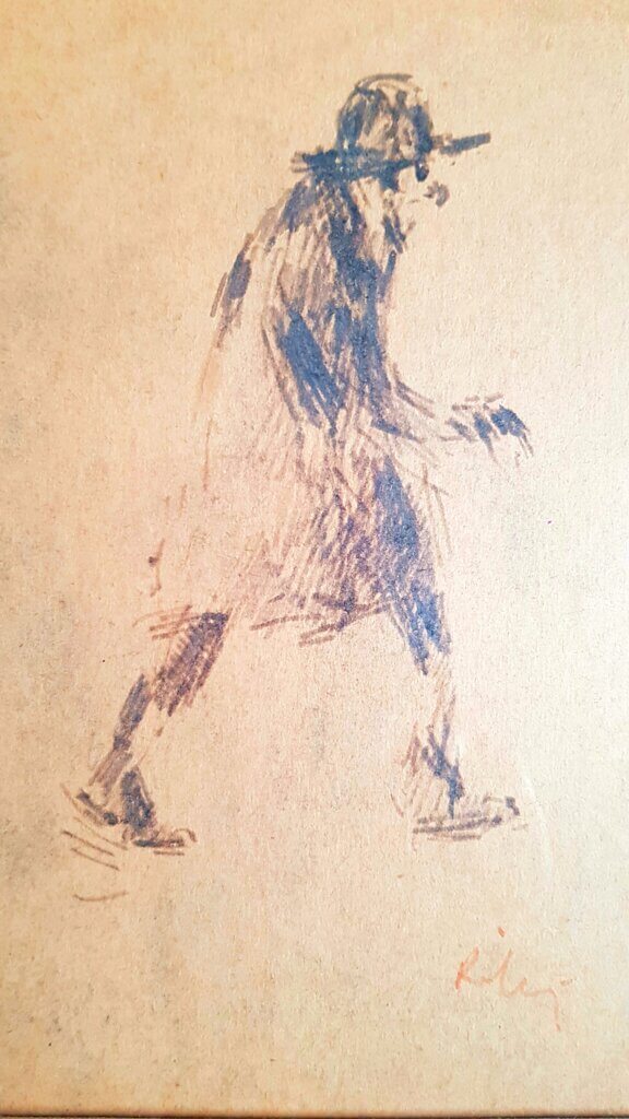 This is a close up of Harold Riley’s work titled “The Tramp”.