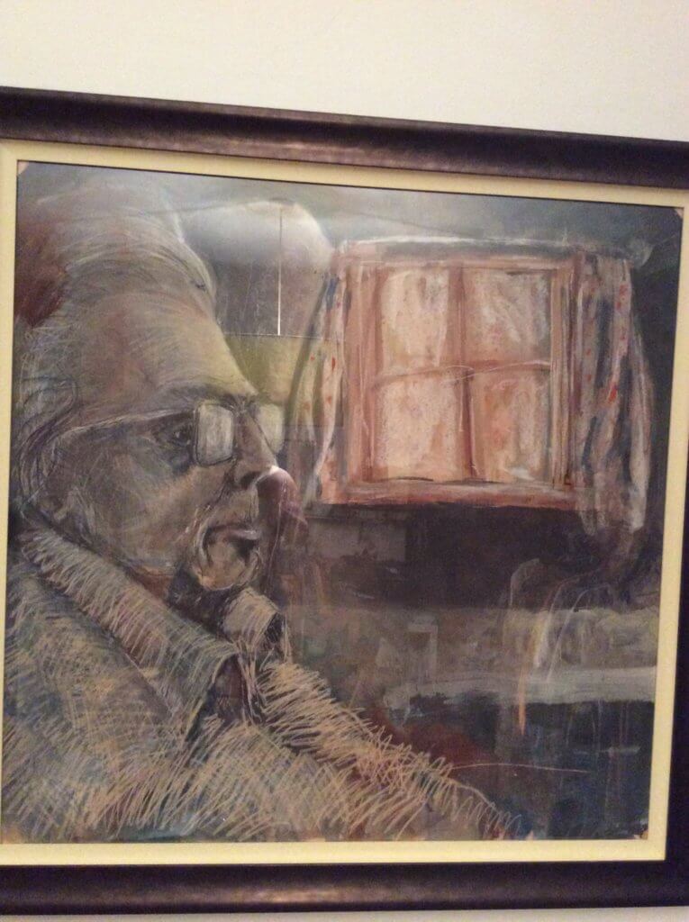 Who sits by an electric fire?