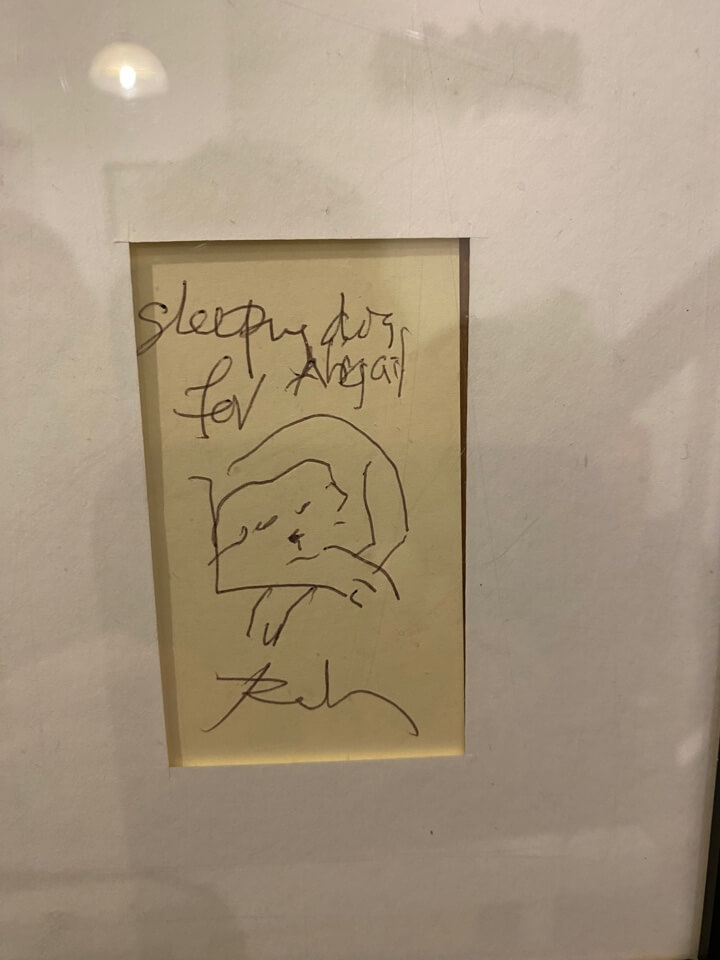 It was around 3 years ago when we were passing Mr Riley’s gallery in Lowry Outlet. I told Luke and Abigail who Mr Riley was as I am also an old boy of Salford Grammar School. We introduced ourselves to him and he was happy to speak to the children and enquired which areas of Salford they lived. He did the drawings on the reverse of two business cards and agreed to the photo with Luke and Abigail. They now have them proudly displayed at their homes and Abigail took hers to school when Mr Riley was the subject of a lesson.