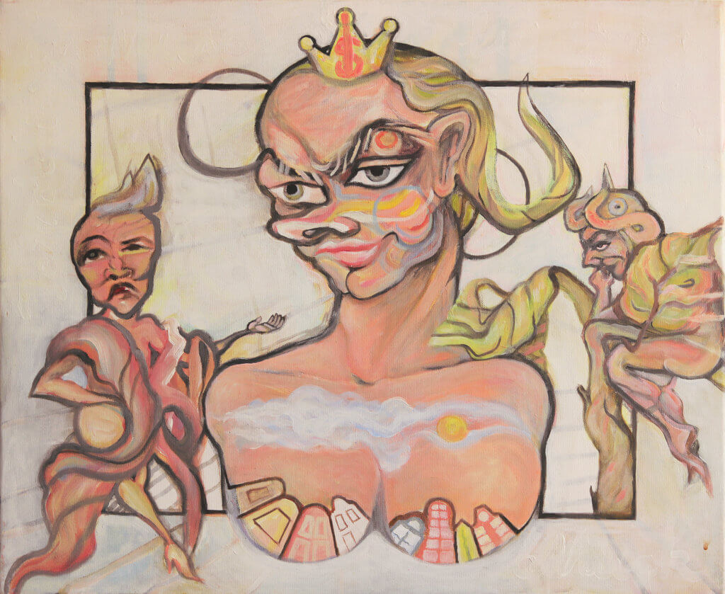 The summary of this piece’s inspiration and message was published in an essay https://maraleverkuhn.medium.com/painting-faustian-trade-offs-3ac058026d1c