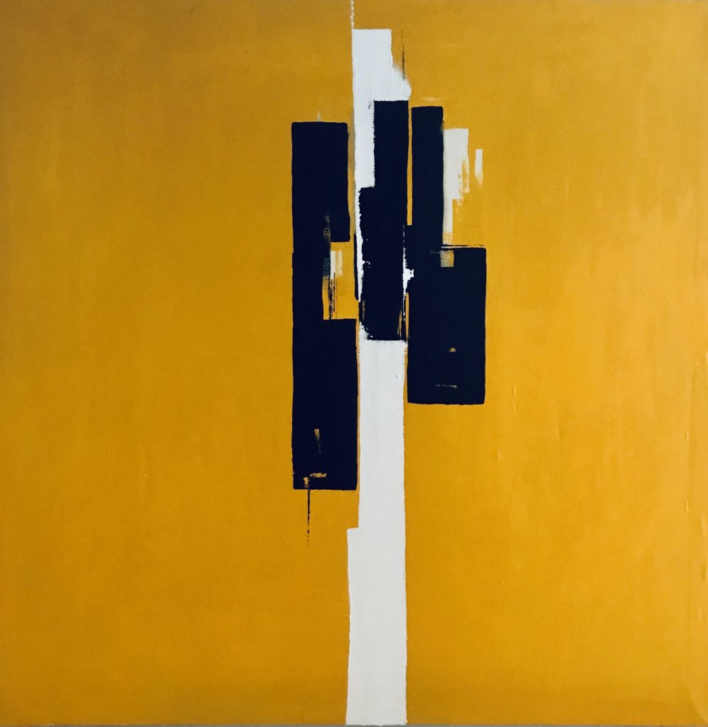 My work focuses on the Beauty of the process of painting, the movement of brushstrokes and colour. The sometimes forgotten element of the actual process of painting and how we can express ourselves through that process. For Yellow I was inspired by the contrast of bright and dark and how ink and paint react to each other in layers.