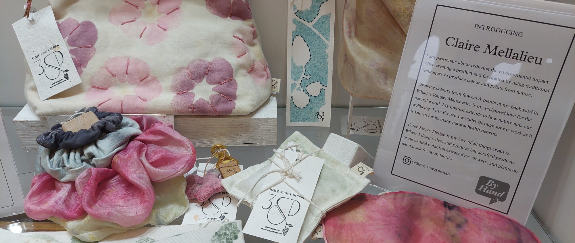 Three Storey Design is my love of all things creative. Where I design, dye, and produce handcrafted products, using natural botanical extract dyes, flowers, and plants on natural silk & cotton fabrics. Fabrics are prepared by Scouring & Mordanting.