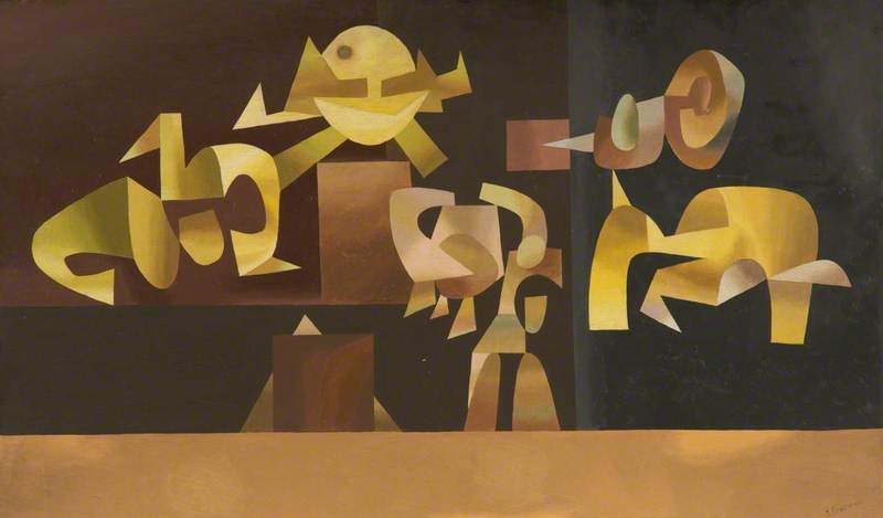 John Tunnard was born in Bedfordshire and initially trained in design at the Royal College of Art. After working as a textile designer in Manchester he taught design at the Central School of Arts and Crafts, London and took up painting seriously in 1928. His first group show was at the Royal Academy of Arts in 1931 and there followed a one man show at the Redfern Gallery in 1933. In the early 1930s Tunnard and his wife moved to Cornwall where they ran a business making printed silks.