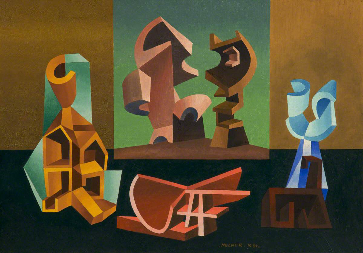 Allan Milner was born in Castleford, Yorkshire and attended the local grammar school where his art teacher had previously taught sculptor Henry Moore. He won scholarships to Leeds College of Art and the Royal College of Art in London. Milner had impressive colour and composition skills and embraced an abstract style which was cutting edge in the 1930s. He had his first exhibition at the Mayor Gallery in 1932 and he went on to exhibit at other galleries around London.