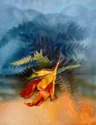 The starting points for her paintings were often natural objects she had seen or picked up during walks. She studied these closely making numerous drawings before incorporating them into paintings. She later explained that it was at this point that they took on a surreal and mysterious life of their own as she played with their scale and setting. She described this transformation as a sort of resurrection, or bringing back to life, of dead or inanimate objects.